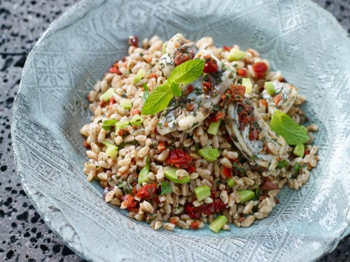 Farro Freddo Ricette: Farro freddo con pesce e zucchine.